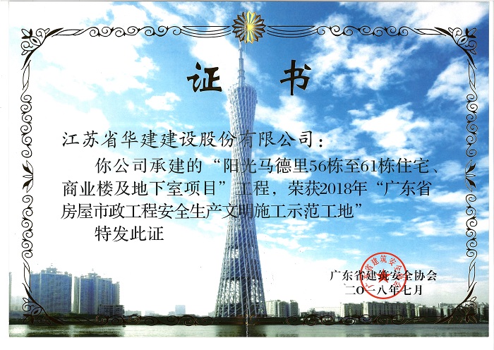 陽光馬德里獲2018年廣東省建設工程項目安全生產生產標準化工地