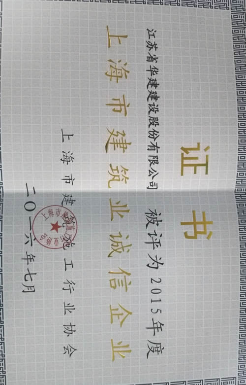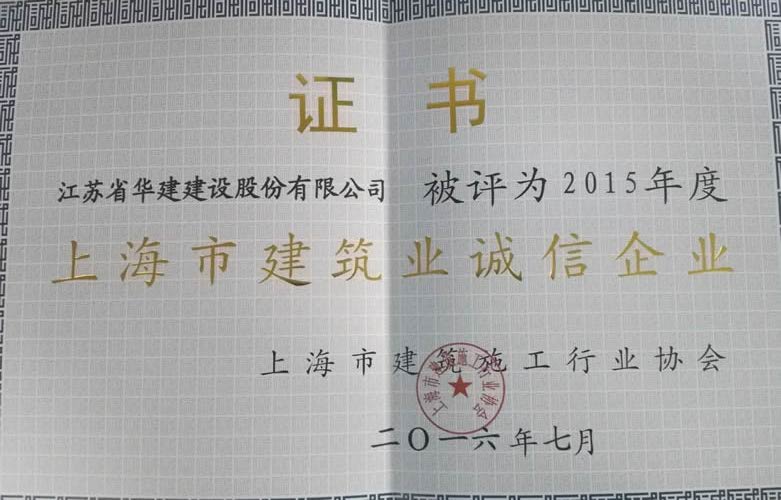 上海分公司積極響應(yīng)上海市行業(yè)主管部門要求全面貫徹落實(shí)《建設(shè)部關(guān)于加快建筑市場(chǎng)信用體系建設(shè)工作的意見》號(hào)召,在加強(qiáng)行業(yè)自律和誠(chéng)信建設(shè)方面做了大量有效工作。8月16日,在上海市建筑施工行業(yè)協(xié)會(huì)召開的2015年度上海市建筑業(yè)誠(chéng)信企業(yè)頒獎(jiǎng)大會(huì)上,公司被表彰為“上海市建筑業(yè)誠(chéng)信企業(yè)”(僅206家在滬建筑施工企業(yè)),這是第九次獲此殊榮。