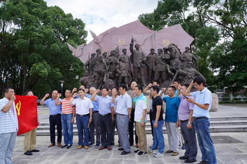 上海分公司黨總支組織開展“紅色之旅”教育 時間:2016-08-16 4057 8月12日,上海分公司黨總支組織部分黨員干部和入黨積極分子共18人,赴愛國主義教育基地福建古田開展“促兩學一做,走紅色之旅”教育活動,在“主席園”向毛主席像敬獻花籃,在“豐碑軍魂”雕像前面對黨旗重溫入黨誓詞,還仔細參觀古田會議地址和紀念館,回顧緬懷了老一輩無產(chǎn)階級革命家的不朽事跡。大家牢記“古田會議永放光芒”精神,紛紛表示:“不忘初心,繼續(xù)前行”。