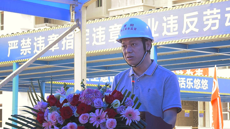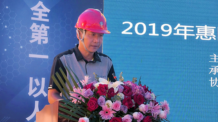 惠州市住房和城鄉(xiāng)建設(shè)局副局長商紅新最后講話,他高度贊揚(yáng)江蘇華建在工程施工中的安全管理、文明施工水平,并希望項目繼續(xù)保持良好勢頭,一如既往地注重安全、抓好質(zhì)量、保證進(jìn)度,圓滿完成工程任務(wù)。對于當(dāng)前安全生產(chǎn)工作,他提出三點(diǎn)意見:一是各企業(yè)要強(qiáng)化底線思維和紅線意識,把安全生產(chǎn)工作抓實(shí)抓細(xì)抓到位;二是緊扣安全生產(chǎn)月主題,始終以敬畏之心對待安全生產(chǎn)工作,落實(shí)責(zé)任,嚴(yán)格履職盡責(zé);三是以安全生產(chǎn)月為契機(jī),牢牢把好安全培訓(xùn)教育關(guān)口,真正提高從業(yè)人員的安全知識、安全意識、安全技能和應(yīng)對各類突發(fā)事件的處置能力。