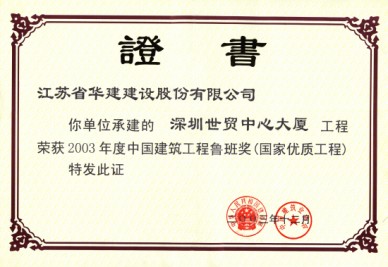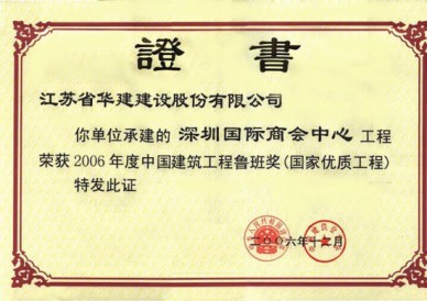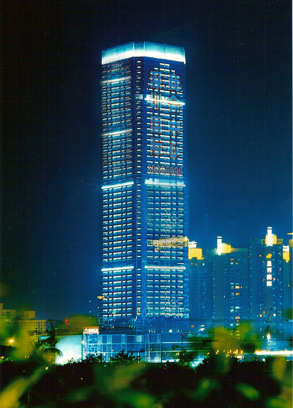深圳國際商會中心位于深圳市福田中心區(qū)6-3地塊,是深圳市CBD標(biāo)志性建筑,與會展中心隔街相望,是深圳會展經(jīng)濟(jì)圈的地標(biāo),也是深圳第一座擁有智能門禁系統(tǒng)、第一座擁有酒店式行車大廳、中心區(qū)第一座擁有商務(wù)直升機(jī)停機(jī)坪的寫字樓。 本工程是集辦公與商業(yè)為一體的超高層民用建筑,地下3層地上55層,總建筑面積為134081.38平方米,建筑高度216米,結(jié)構(gòu)形式上,主樓為內(nèi)筒外框勁性混凝土結(jié)構(gòu),外墻裝飾主要采用玻璃幕墻,干掛花崗巖和復(fù)合鋁板。本工程于2002年9月3日開工,2004年12月16日竣工。2003年下半年被評為深圳市優(yōu)質(zhì)結(jié)構(gòu)工程,2004年下半年先后通過了深圳市建筑業(yè)新技術(shù)應(yīng)用示范工程驗(yàn)收和江蘇省第八批新技術(shù)應(yīng)用示范工程驗(yàn)收,新技術(shù)應(yīng)用“總體上達(dá)到國內(nèi)領(lǐng)先水平”。此工程應(yīng)用了建筑業(yè)10項(xiàng)新技術(shù)中的9項(xiàng),其他新技術(shù)8項(xiàng),重點(diǎn)創(chuàng)新新技術(shù)2項(xiàng)。在施工過程中,多次受到有關(guān)各方組織的觀摩會、參觀會,2005年獲深圳市優(yōu)質(zhì)工程“金牛獎”、廣東省“金匠獎”、江蘇省“揚(yáng)子杯”,并榮獲“中國十大金牌寫字樓”榮譽(yù)稱號。2006年獲全國建筑最高獎——魯班獎。