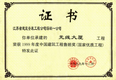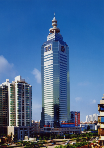 深圳無線大廈 時間:2008-12-29 11218 無線大廈(現名國通大廈)位于福田區新洲,建筑面積73069M2,高度201.5M,地下室2層,地上43層,是一座高智能化的電信寫字樓,結構設計為鋼筋砼框架一筒體結構,8-32層為無粘結預應力樓板砼,工程總造價6億元。工程于1995年6月開工,1997年12月竣工,施工中主要應用了無粘結預應力砼、高強泵送砼、粗直徑鋼筋連接、外墻干掛花崗巖等新技術。榮獲深圳市、廣東省、江蘇省的優質樣板工程,“江蘇省新技術應用示范工程”、江蘇省“揚子杯”獎和99年度國家“魯班獎”。
