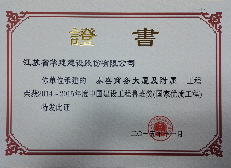 秦皇島泰盛商務大廈 時間:2015-11-23 17309 泰盛商務大廈及附屬工程地處秦皇島市經濟開發區核心位置,集商務辦公、會議中心、一站式服務大廳及報告演藝廳等功能為一體的綜合類商務辦公樓,地下1層,地上23層,裙樓兩層,建筑面積90148㎡,建筑高度97.75米。工程先后榮獲全國建筑業綠色施工示范工程、江蘇省新技術應用示范工程、江蘇省省級工法、河北省結構優質工程獎、河北省建設工程安濟杯獎(省優)、全國優秀項目管理成果獎、全國優秀QC小組成果一等獎。2015年,被中建協評為2014-2015年度中國建設工程魯班獎(國家優質工程)。
