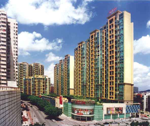 該工程位于廣東省深圳市羅湖區(qū)太寧路與東曉路交匯處,工程占地面積 14583.8㎡,建筑面積為213030㎡,工程東西長271m,南北寬94m。地下一至二層,地上10棟塔樓,12~34層,建筑高度118.8m,工程于2003年9月6日開工,2005年4月28日竣工,工程竣工決算造價3.76億元。