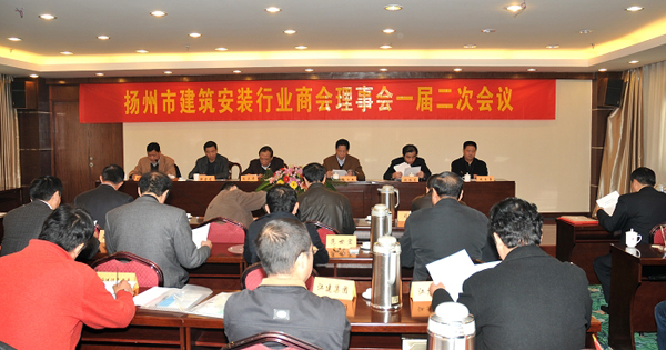 11月30日,揚州建筑安裝行業(yè)商會理事會一屆二次在揚召開,全市34家理事單位參加會議。市人大副主任、工商聯(lián)主席、總商會會長孫永如,市政協(xié)副主席朱正海,市工商聯(lián)黨組書記、總商會副會長趙振東,市建工局副局長成自勇等領(lǐng)導(dǎo)出席會議。