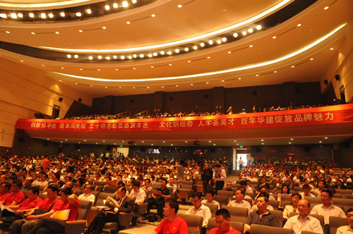 5月9日下午,公司在揚州京杭之心會議中心隆重舉行成立三十周年慶祝大會。全國人大環(huán)資委原主任委員毛如柏出席慶典。揚州市代市長朱民陽代表市委、市政府向公司成立三十周年表示祝賀,并希望公司圍繞“百年企業(yè)、千億規(guī)模”的發(fā)展目標,加快做大、做強、做優(yōu)、做久。朱民陽代市長進一步指出,建筑業(yè)是揚州的優(yōu)勢產(chǎn)業(yè)和富民產(chǎn)業(yè),江蘇華建以櫛風(fēng)沐雨、勇立潮頭的勇氣,以敢為人先、勇于創(chuàng)先的銳氣,以創(chuàng)新創(chuàng)優(yōu)、創(chuàng)業(yè)創(chuàng)造的志氣,以鑄造精品、追求卓越的豪氣,搶抓機遇、脫穎而出,是揚州的驕傲,揚州的榮耀,揚州的自豪。公司董事長陸金龍在慶典上匯報了公司三十年來的發(fā)展業(yè)績和今后的發(fā)展構(gòu)想。儀式上,公司還與戰(zhàn)略合作單位互換戰(zhàn)略合作協(xié)議書。
