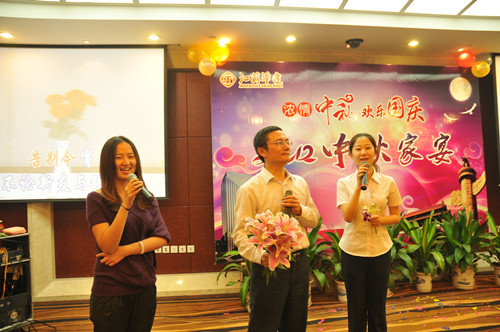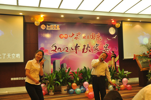 公司舉辦2012中秋家宴 時間:2012-10-06 4535 9月29日,公司在揚州西園大酒店隆重舉辦“濃情中秋,歡樂國慶——2012中秋家宴”,公司總部機關、在揚分支機構和駐外分公司回揚休假的經營層人員約百人共聚一堂,喜迎中秋、國慶佳節的來臨。家宴上,無論是領導還是普通員工,大家縱情高歌,歡樂表演,充分展現了華建大家庭其樂融融的喜慶氣氛,同時展示了華建人昂揚向上的精神風貌。