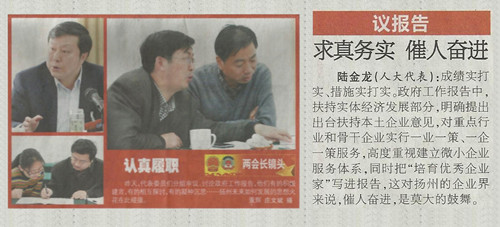 《揚(yáng)州日報(bào)》報(bào)道陸董事長參加市人代會情況