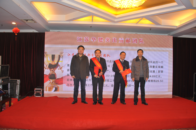 表彰會上,公司對2013年度表現突出的個人和團隊進行了表彰, 34位員工獲評“優秀員工”稱號,朱靖、呂進、嚴正濤、朱旭生、陳明等5同志被表彰為“明星員工”,華建地產運河城市廣場項目團隊和江蘇華建成都分公司團隊被表彰為“突出貢獻團隊”。