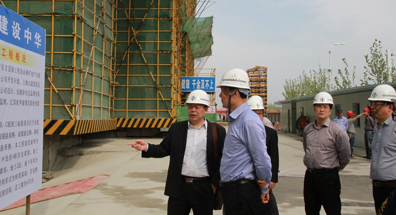聞道才副市長赴安徽分公司視察東方藍海項目 時間:2014-04-11 3416 4月10日下午,揚州市副市長聞道才一行赴安徽分公司視察了合肥東方藍海B、C組團三標段項目。公司副總經理陸俊、副總經理、惠州公司總經理華恒榮陪同參加。 在項目現場華恒榮副總經理向來訪領導簡要介紹了江蘇華建在安徽市場的發展戰略及東方藍海B、C組團三標段項目的施工情況。聞市長對施工現場、施工組織非常滿意,并再三強調要抓好安全工作,爭創優質工程,為揚州建筑業在安徽市場的發展做出積極貢獻。
