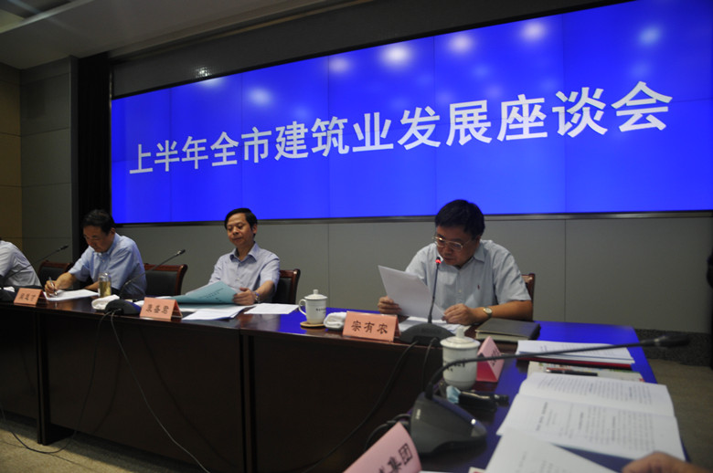 8月29日上午,揚州建工控股、江蘇華建總經理宗有農在揚州市政府會議室參加上半年全市建筑業發展座談會,并代表江蘇華建在會上作了《質態優先,穩步快走,創造發展新格局》的交流發言。1-7月份,全市建筑業實現產值1390億元,同比增長12%,其中江蘇華建完成117.39億元,占全市的8.4%,同比增長20.55%,特別是面對嚴峻的市場形勢仍保持穩定、快速發展,承接10萬平方米以上規模工程就達85項,同比增長43%,并且在堅持施工主業為主業的情況下,加快產業鏈拓展和資本運作步伐,著力培育上下游產業,為集團化、產業化經營奠定了基礎。聞道才副市長在講話中充分肯定了江蘇華建的發展質量和競爭力。會議還表彰了2013年度揚州市建筑業綜合實力20強企業,江蘇華建位居前列。