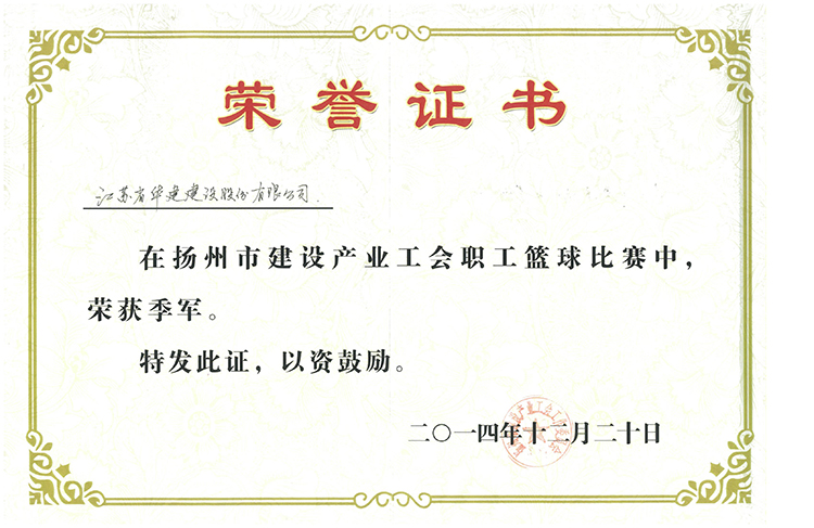 公司籃球隊獲市建設產業工會籃球賽季軍 時間:2014-12-22 4170 12月20日,在揚州市職業大學瘦西湖校區體育館舉辦的“揚州市建設產業工會籃球比賽”中,由總部機關、設計院和檢測中心職工組成的公司籃球隊努力拼搏、奮勇爭先,以兩勝一負的戰績榮獲比賽季軍。 建設產業工會田主席為公司籃球隊頒發獎狀