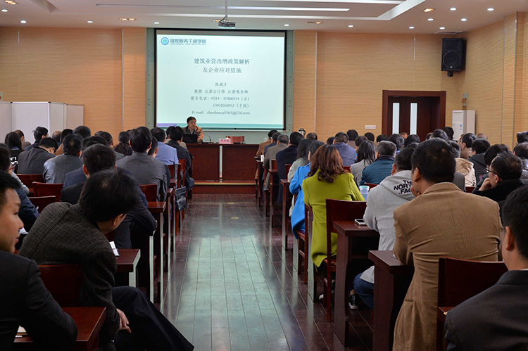 公司開展營改增試點業務培訓 時間:2016-04-11 3606 4月5日和6日,公司財務部和華建學院聯合組織的營改增試點業務培訓分別在揚州和北京開班。公司總部、北京和上海區域公司、駐揚分支機構及公司聯盟企業的主要負責人、經營和財務工作分管領導及有關人員共計210余人參加了培訓。 此次培訓特邀市國家稅務學院陳斌才教授主講。陳教授就建筑業營改增政策及企業應對措施作了專業分析和講解,并與參培人員進行了互動交流,使參培人員對建筑業營改增有關政策有了更深刻的理解和認識,達到了預期效果。 按照培訓工作計劃,本月中旬還將在深圳和海南兩地組織區域公司有關人員培訓。