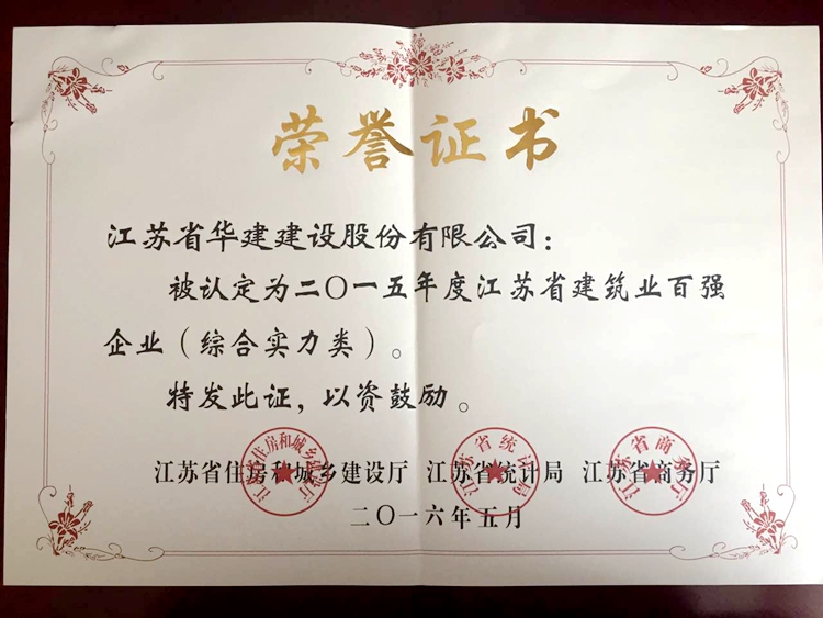 江蘇華建成功入選江蘇省建筑業(yè)百?gòu)?qiáng)企業(yè) 位列綜合實(shí)力類第3名