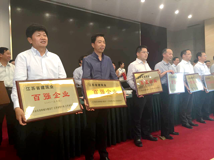 6月13日,江蘇省建筑業(yè)“走出去”工作會(huì)議暨2015年度“百?gòu)?qiáng)企業(yè)”發(fā)布會(huì)在寧召開(kāi),江蘇華建位列百?gòu)?qiáng)企業(yè)綜合實(shí)力第3名,創(chuàng)近年省內(nèi)排名最好位次。公司董事長(zhǎng)陸金龍出席會(huì)議,江蘇省副省長(zhǎng)張雷為陸董事長(zhǎng)授牌。