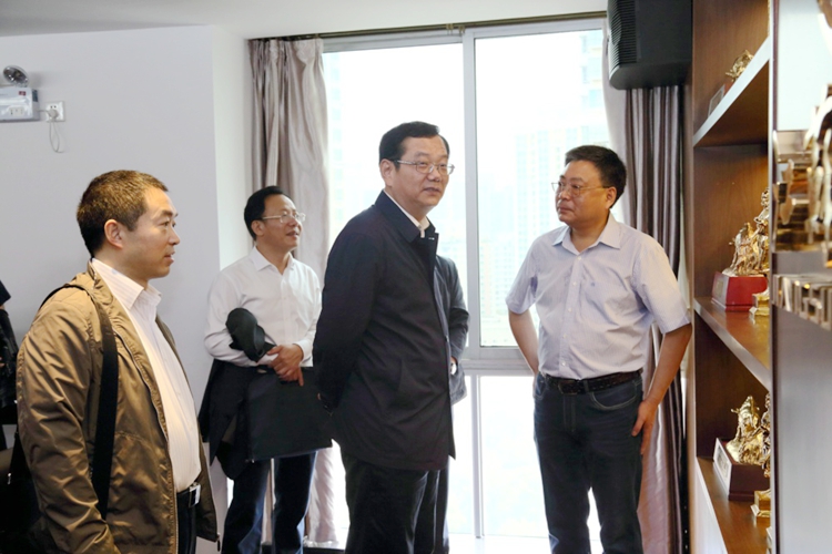 在公司總經理宗有農陪同下,陳揚副市長到深圳公司各部門與員工交談,并向一線管理人員表達親切問候。他參觀了深圳公司大會議室魯班獎金像和各類獎杯獎牌,對江蘇華建在深圳取得的成就表示肯定和贊賞。