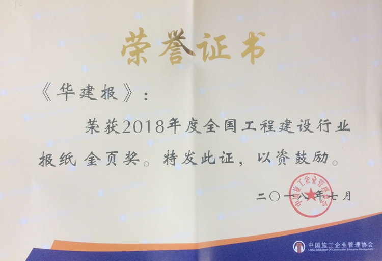 《華建報(bào)》再獲“全國(guó)工程建設(shè)行業(yè)報(bào)紙金頁(yè)獎(jiǎng)” 時(shí)間:2018-07-23 4822 7月18日至20日,中國(guó)施工企業(yè)管理協(xié)會(huì)2018年度工程建設(shè)企業(yè)文化論壇暨通聯(lián)員工作會(huì)議在蘇州召開。公司內(nèi)刊《華建報(bào)》再度獲評(píng)“2018年度全國(guó)工程建設(shè)行業(yè)報(bào)紙金頁(yè)獎(jiǎng)”,公司翟法寶獲評(píng)“2018年度中國(guó)施工企業(yè)管理協(xié)會(huì)優(yōu)秀聯(lián)絡(luò)員”。