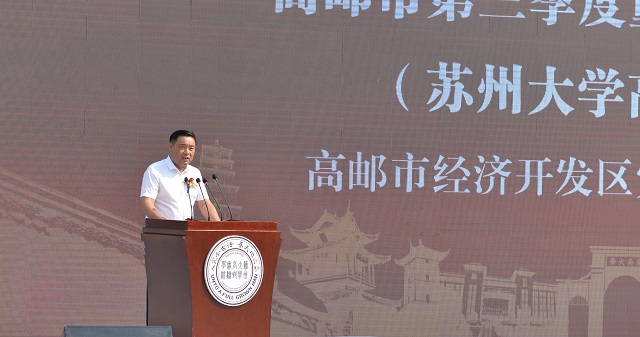 江涌在致辭中表示,蘇州大學(xué)將集中一切優(yōu)勢資源,將蘇大高郵實驗學(xué)校項目辦成區(qū)域內(nèi)高質(zhì)量人才培養(yǎng)的示范區(qū)、基礎(chǔ)教育改革發(fā)展的創(chuàng)新區(qū)、優(yōu)質(zhì)基礎(chǔ)教育資源的輻射區(qū),加快高郵教育現(xiàn)代化建設(shè)步伐。