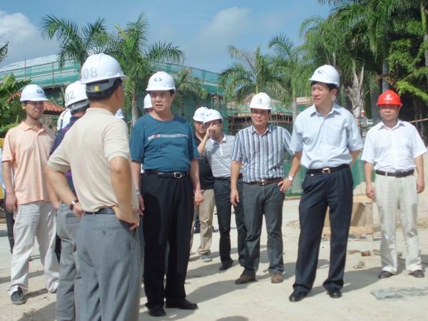 海南省委書記羅保銘等視察海南公司 時間:2012-07-08 4369 6月6日下午,海南省委書記羅保銘,省委常委、副省長、三亞市委書記姜斯憲冒著高溫來到我公司承建的鹿回頭國賓館二期擴建項目現場視察慰問,公司副總經理、海南分公司總經理王宏陪同視察。羅書記對華建的施工進度和質量表示滿意,同時要求華建把工程當做作品來抓,按時交付代表海南水平的精品項目。羅書記高度評價江蘇華建的綜合實力,認為華建在海南承建了許多重點項目,是一支有實力、善打硬仗的隊伍。姜斯憲副省長希望華建在海南繼續保持良好發展勢頭,為江蘇建筑業爭光。