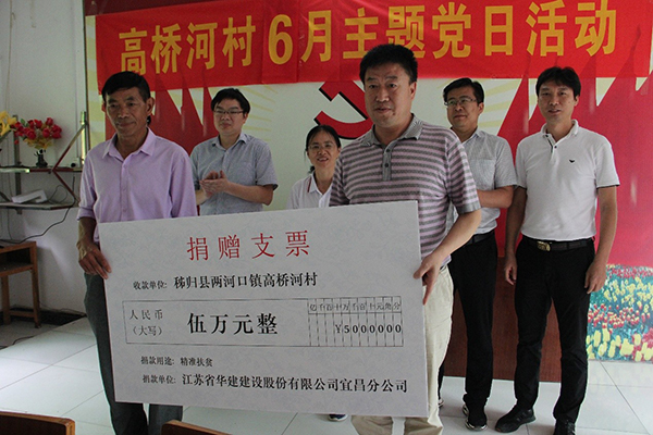 7月3日,宜昌分公司在宜昌市委常委、副市長(zhǎng)劉偉玲的見證下,與宜昌市江蘇商會(huì)和湖北廣盛建設(shè)公司共同參與秭歸縣兩河口鎮(zhèn)高橋河村精準(zhǔn)扶貧,各捐贈(zèng)精準(zhǔn)扶貧資金5萬(wàn)元。