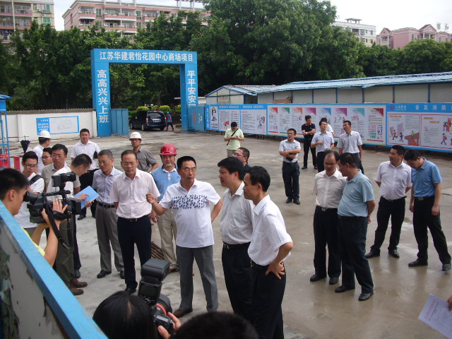 2015年6月23日下午,廣東省陽江市市委書記魏宏廣、市長丘志勇及市直有關部門主要負責人視察我公司承建的君怡花園中心商場項目,建設方君創房產董事長方興德、江蘇華建陽江分公司總經理盧達現場陪同。魏書記在了解項目的工期進展、安全文明施工及質量等詳細情況后表示:本項目作為陽江市標志性的城市綜合體項目,一定要高標準建設、高標準定位。城市綜合體建設項目是城市擴容提質的重點項目,各方要堅定信心,克服困難,加快推進項目建設,力爭早日建成,為市民提供新的城市生活空間。