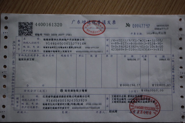 珠海區域公司第一張增值稅發票成功開具 時間:2016-06-01 2844 建筑行業“營改增”自5月1日起正式實施,公司領導高度重視“營改增”工作,先后完成了稅控設備軟硬件更新、數次的“營改增”知識培訓及交流會,并在主管國稅局完成了有關一般納稅人認定、增值稅發票額度調整、公司老項目備案等工作。 5月31日,財務處成功開具了第一張增值稅普通發票,此票為公司第五項目部承擔施工任務的晉和天慶花園總承包工程使用,走出了公司“營改增”工作的堅實一步。