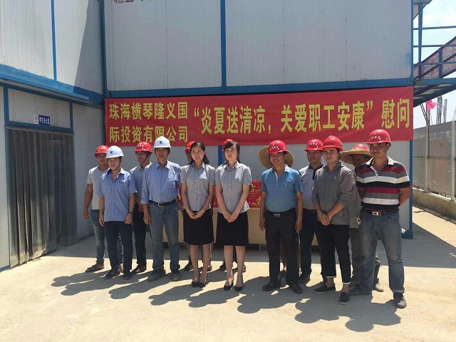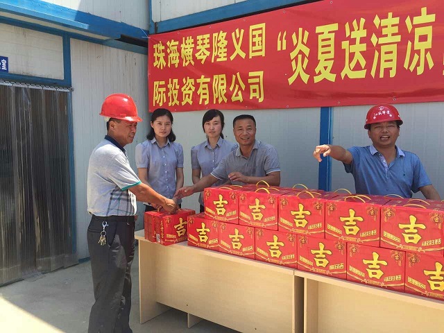 炎炎夏日送清涼 時間:2016-08-01 3790 7月30日上午,珠海分公司橫琴隆義廣場項目部工地熱浪朝天,機聲隆隆,人來人往,一派繁忙景象。一支由江蘇華建直五項目部和橫琴隆義投資公司共同組成的“送清涼”小分隊也在工地上奔忙著,項目經理姚寧與投資公司負責人王艷、許珂等正在將一箱箱王老吉飲料有條不紊地送到建筑工人手中,讓廣大一線職工在炎炎烈日下感受到陣陣清涼。