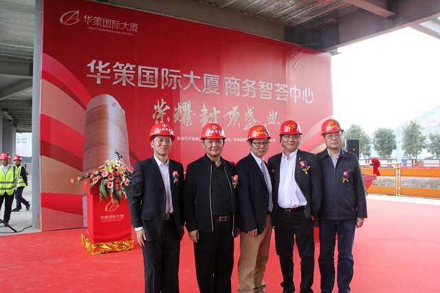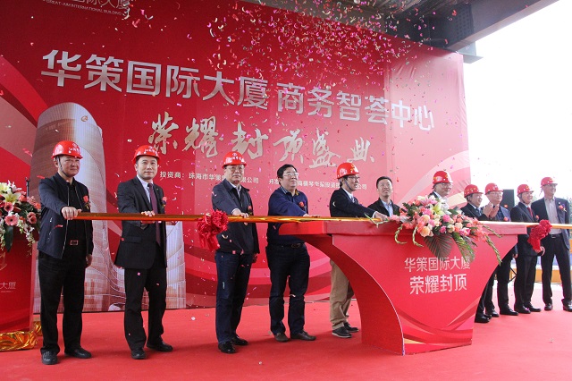 2017年1月9日,第八項(xiàng)目部承擔(dān)施工任務(wù)的華策國(guó)際大廈項(xiàng)目舉行主體結(jié)構(gòu)封頂儀式。橫琴新區(qū)黨委副書(shū)記葉真、橫琴新區(qū)建設(shè)環(huán)保局局長(zhǎng)劉晨光,華策集團(tuán)董事局主席楊峰、副主席楊智雄、總裁余道群,江蘇華建副董事長(zhǎng)、總經(jīng)理宗有農(nóng)、珠海公司總經(jīng)理繆國(guó)樞、深圳公司常務(wù)副總吳碧橋、深圳公司副總經(jīng)理蔣超,以及來(lái)自華策集團(tuán)、設(shè)計(jì)單位、參建單位、監(jiān)理單位和珠海區(qū)域公司相關(guān)人員共200余人出席儀式。華策國(guó)際大廈整體分為東塔和西塔兩部分,西塔已于2016年11月8日封頂,隨著東塔的順利封頂,華策國(guó)際大廈全面封頂,并將于2017年部分投入使用,2018年底全部投入使用。