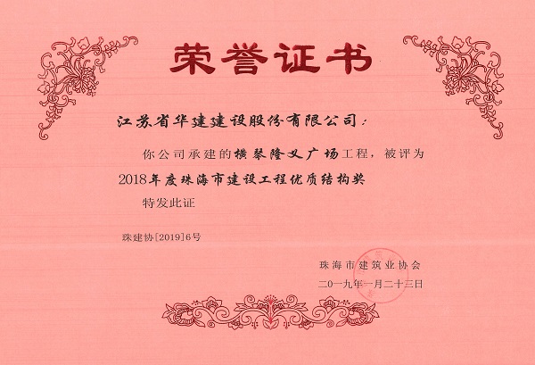 公司獲評2018年度珠海市建筑業(yè)優(yōu)秀企業(yè)