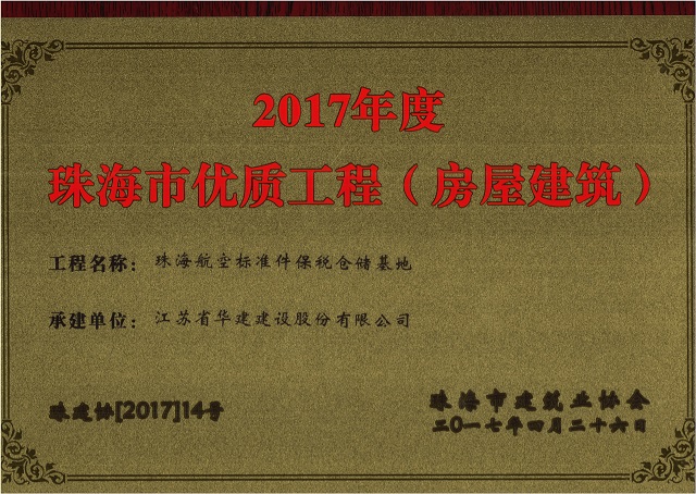 公司榮獲三項2017年度廣東省建設工程優質獎 時間:2017-10-17 3488 近日,廣東省建筑業協會發文公布2017年度廣東省建設工程優質獎名單,我司承建的珠海航空標準件保稅倉儲基地、丹田廣場二期和君怡花園小區中心商場3個項目榜上有名。