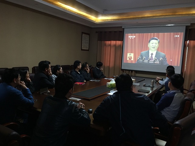 部分出差在外的員工也積極爭(zhēng)取時(shí)間用手機(jī)等移動(dòng)設(shè)備收看收聽大會(huì)報(bào)告。同時(shí),區(qū)域公司所有項(xiàng)目部也通過(guò)電子顯示屏、懸掛條幅等方式熱烈祝賀黨的十九大勝利召開。