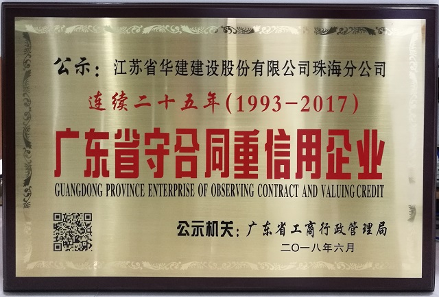 公司連續(xù)二十五年被廣東省工商行政管理局表彰為“守合同重信用企業(yè)” 時(shí)間:2018-06-21 2814 近日,珠海公司被廣東省工商行政管理局授予“連續(xù)二十五年守合同重信用企業(yè)”榮譽(yù)稱號(hào)。