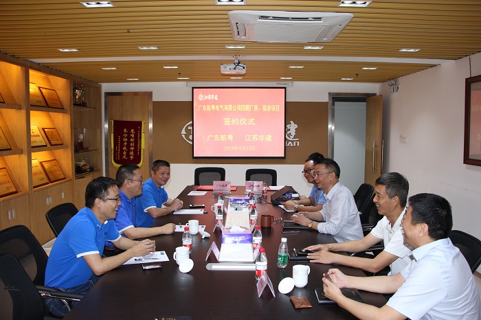 在公司會議室,雙方共同觀看了江蘇華建企業(yè)宣傳片,并進(jìn)行了親切友好的會談。楊建豐董事長表示,江蘇華建綜合實(shí)力、行業(yè)口碑俱佳,項(xiàng)目交托華建施工我們深感放心,期待能與江蘇華建進(jìn)一步深化合作、互利共贏。呂總感謝廣東航粵給予江蘇華建的充分信任,指出江蘇華建深耕珠海特區(qū)30余年,一直堅(jiān)持“鑄造精品、追求卓越”的管理理念,我們將組建高效的項(xiàng)目管理團(tuán)隊(duì),科學(xué)統(tǒng)籌,細(xì)致謀劃,確保高速度、高標(biāo)準(zhǔn)、高質(zhì)量地完成項(xiàng)目施工任務(wù),我們也期待與廣東航粵進(jìn)一步挖掘合作商機(jī),深化友誼,攜手并進(jìn)。