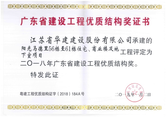 陽光馬德里獲2018年廣東省建設工程優(yōu)質結構獎