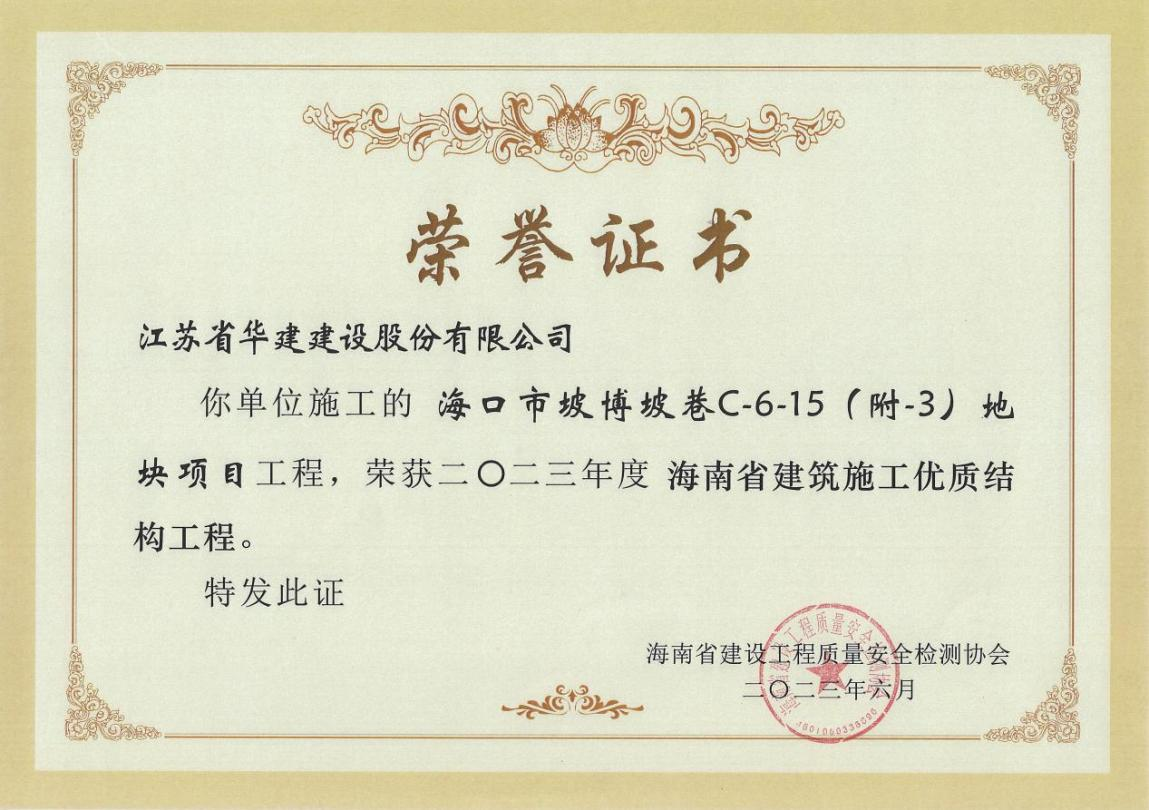 近日,海南省建設(shè)工程質(zhì)量安全檢測協(xié)會公布了2023年度(6月份)海南省建筑施工優(yōu)質(zhì)結(jié)構(gòu)工程...