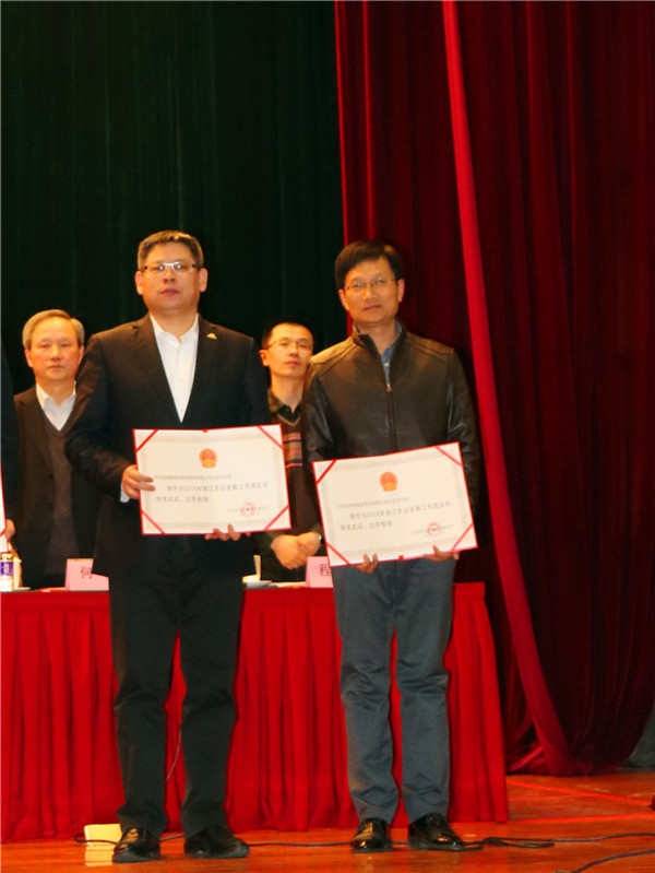 3212017年度江蘇省進京建筑業企業工作會議在京召開,我省住建廳副巡視員、黨委副書記楊洪海、北京辦事處副主任劉宏偉、北京住建委副主任趙英杰等領導出席了會議并作出重要講話。本次會議還對2016年度“江蘇出省施工先進企業” 、“江蘇出省施工優秀建造師”以及先進集體和優秀個人進行了表彰。會上,江蘇華建北京公司被省住建廳表彰為“江蘇出省施工先進企業”。北京公司總經理呂進作為獲獎代表上臺領獎。此次表彰,北京公司整體獲獎數量繼續位居江蘇省進京施工企業黨組織首位。其中,北京公司機關黨支部被評為“先進黨支部”,呂方達同志被表彰為“優秀黨務工作者”,王震等6名同志被表彰為“優秀共產黨員”。