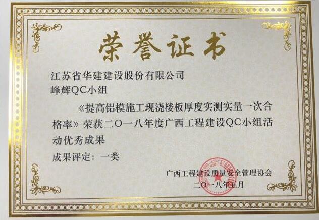 北京公司2項QC成果獲得省級表彰 時間:2018-06-02 2579 日前,北京公司有2項成果獲得省級表彰。蘋果QC小組“提高天棚輻射管道安裝一次合格率”榮獲天津市2018年度建設系統(tǒng)QC成果三等獎,峰輝QC小組“提高鋁模施工現(xiàn)澆樓板厚度實測實量一次合格率”榮獲2018年度廣西工程建設QC小組活動優(yōu)秀成果一類成果。