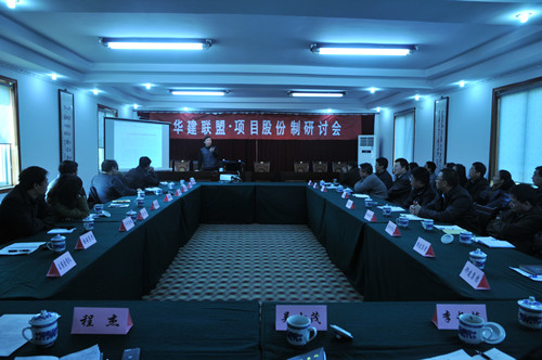 12月10日,為探索聯盟深化合作模式,促進項目管理科學化,推動聯盟單位管理工作再上新臺階,江蘇華建品牌發展與協作聯盟在長江世業洲舉行項目股份制研討會,聯盟投資管理公司、18家聯盟成員企業和4家聯盟觀察員單位的部分董事長或總經理、財務負責人和項目經理代表共40人參加,江蘇華建領導吳士茂、程杰出席研討會。